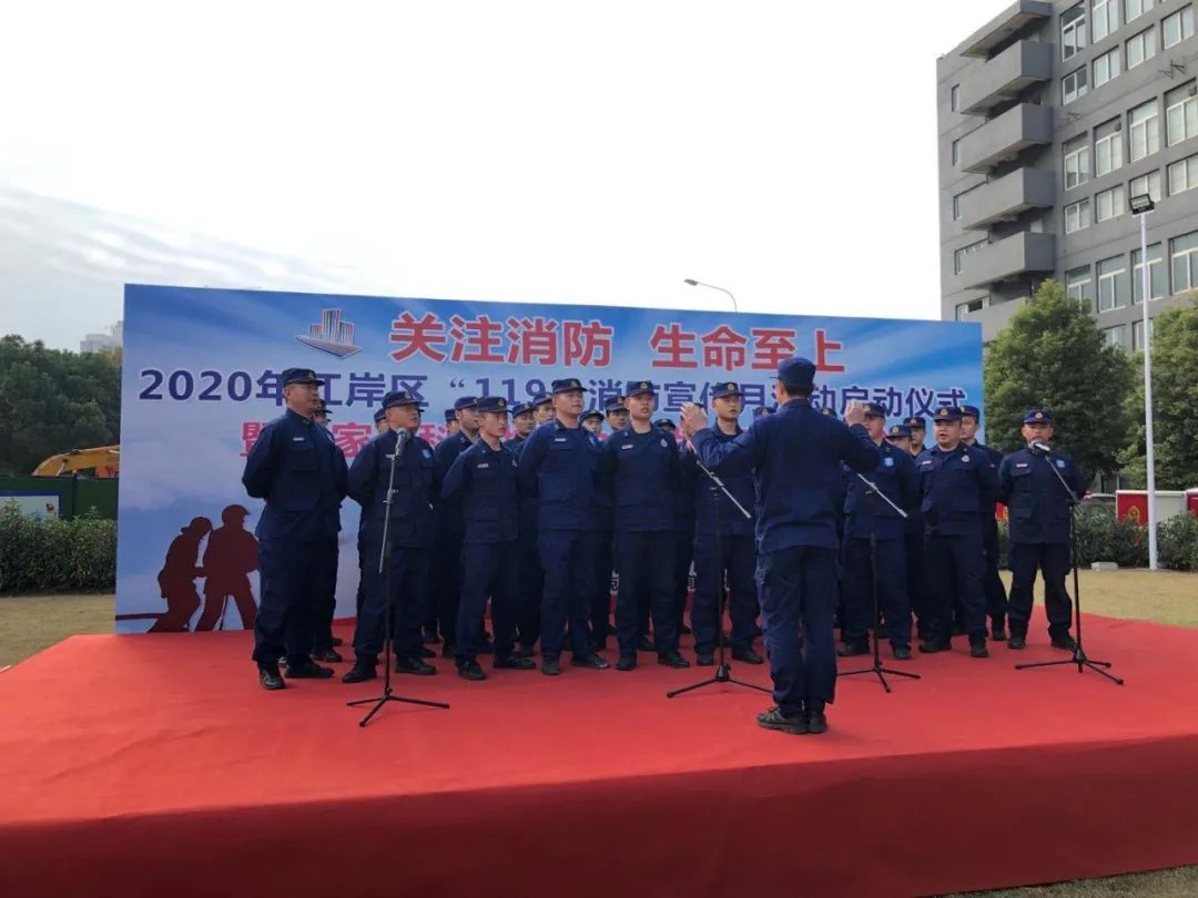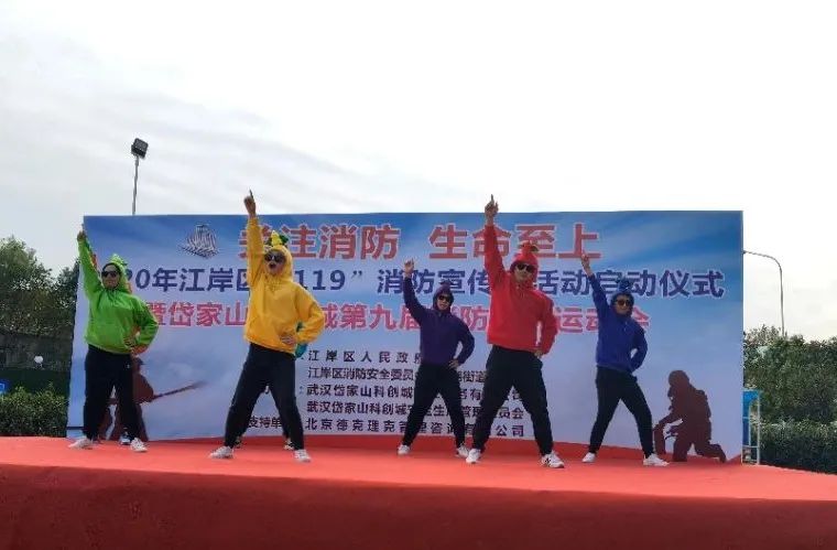 隨后,江岸區消防救援大隊帶來開場大合唱《生命至上》、《沒有共產黨就沒有新中國》、岱家山科創城消安員們帶來消防舞蹈《一塊做消防》,歌頌著大家對生命、對祖國以及對消防事業的熱愛。江岸區應急管理局局長陳超宣讀了《江岸區消防安全委員會關于表彰百名優秀消防志愿者的決定》,江岸區人民政府常務副區長祁琳致辭并宣布2020年江岸區119消防宣傳月活動啟動儀式暨岱家山科創城第九屆消防趣味運動會比賽開始。